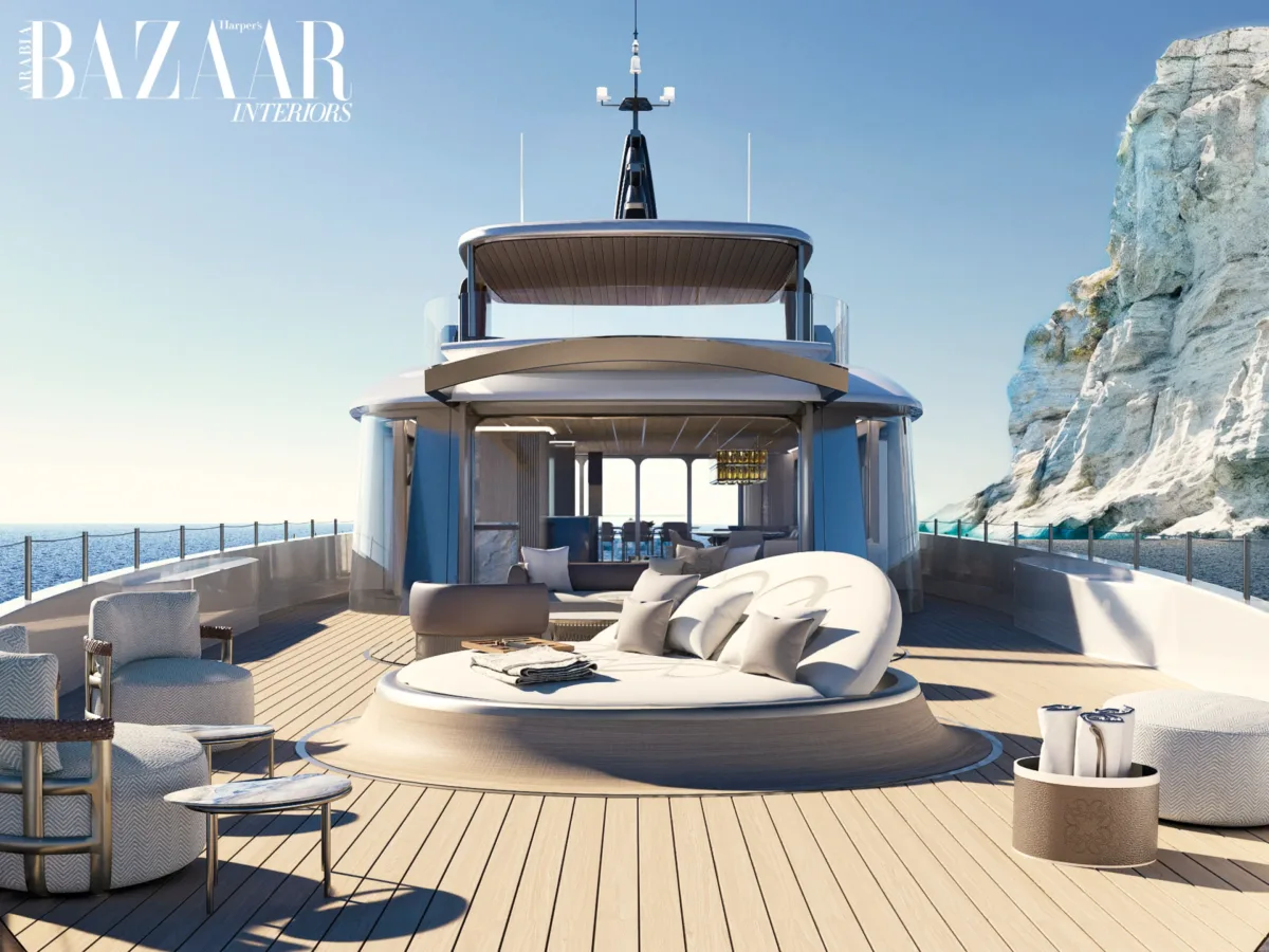 Lebanese designer Elie Saab is taking his designs from couture runways to the high seas, with the launch of 42 Exuma, a 42-metre yacht in collaboration with Italian ship building company, Maiora. Due to set sail in 2027, the ultra-sleek exteriors by Cassetta Yacht Designers segue into interiors that are unmistakably Elie Saab, featuring a refined selection of pieces from the Elie Saab Maison collection and complemented by bespoke elements designed specifically for the ultra-exclusive yachting environment. Seeing the interiors through the designer’s unique lens of design, comfort and experiential luxury, Fumo di Londra and Mystic Ocean marble blend with light bronzed mirrors, and teak wood flooring and ceilings that combine timeless design with marine-specific functionality.