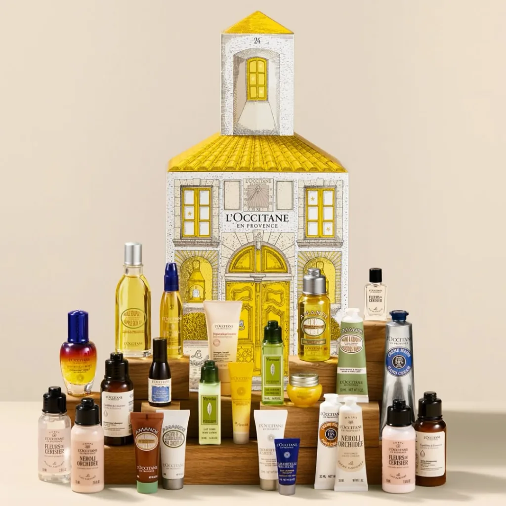 The L’Occitane luxury advent calendar includes 24 thoughtfully chosen beauty indulgences; spanning from skincare and body‑care, to hair‑care and fragrances. The selection features best‑sellers such as the Overnight Reset Serum, Almond Supple Skin Oil, Almond Shower Oil, Fleur de Cerisier Body Lotion, Shea Butter Hand Cream, Gentle & Balance Micellar Shampoo, and a Fleur de Cerisier Eau de Toilette. Designed to resemble a Provençal farmhouse, and made from recycled and sustainably‑sourced materials, this edition is an ode to the brand’s roots.