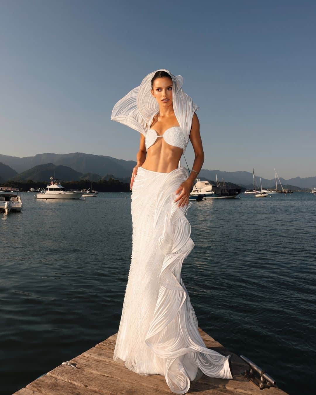 Duda Nogueira Lazarte celebrated her nuptials to Victor Lazarte in a wedding that was the epitome of bridal bliss in Agra dos Reis, Rio de Janeiro, Brazil. Duda shared pictures of her enchanting celebration with Victor, showing the intimate gathering filled with love and joy.