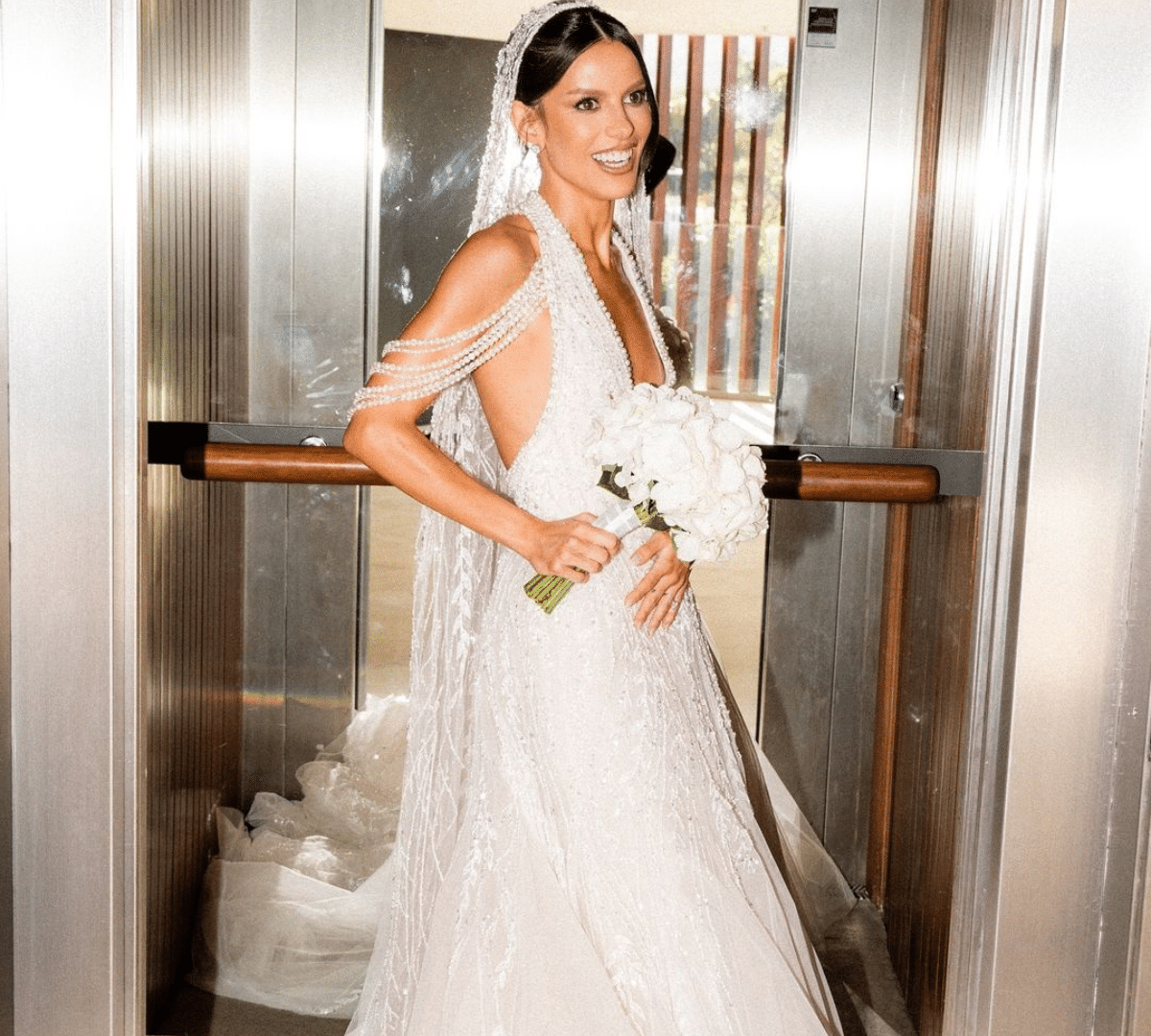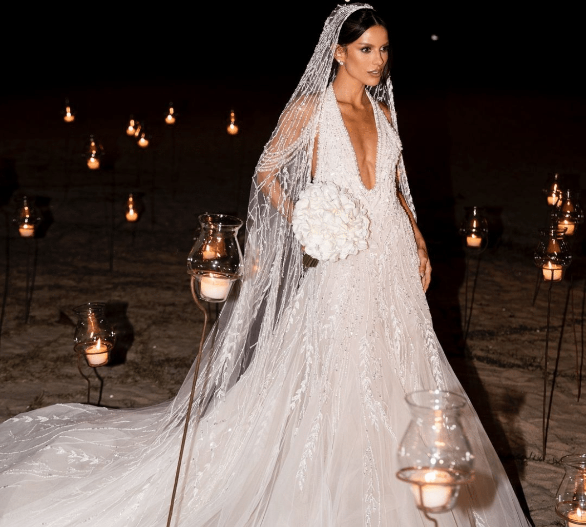The Brazilian beauty walked down the aisle in an exquisite beaded gown and matching veil by renowned Lebanese designer Georges Hobeika, embodying bridal sophistication with every step.