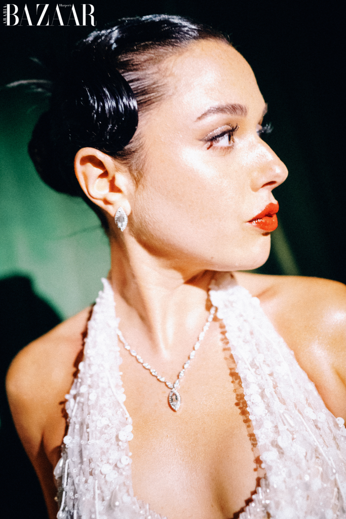 “When I decided to work with Elias Riga, the first thing I told him was that I didn’t want anything that felt déjà vu. I wanted something completely fresh, unique, and bold,” she says. “Elias is incredible at thinking outside the box, and he completely understood my vision. We wanted to tell a story through my looks as the night evolved, capturing different moods while keeping everything cohesive.”