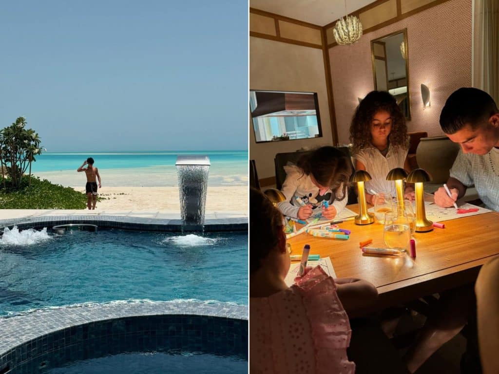 Their latest adventure took them to the Red Sea. Georgina shared pictures of the family, including the couple’s children, enjoying the sun and turquoise waters at a resort on the western coast of KSA. A snap also shows Cristiano busy carrying out his fatherly duties during a colouring session with the little ones.