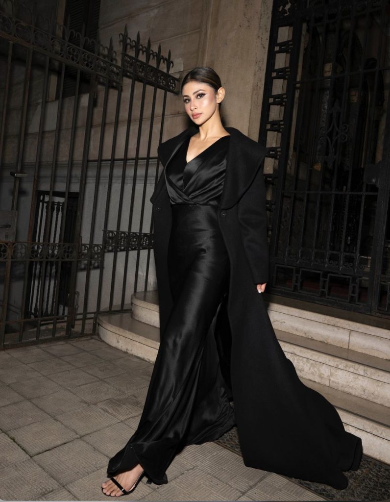 The Indian actress looked elegant as ever, styling an all-black satin, maxi gown by Alberta Ferretti.
