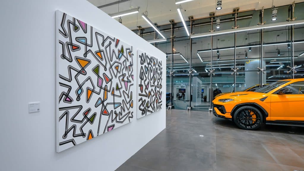 Curated by Firetti Contemporary and on view at the Lamborghini showroom, the exhibition showcases artists from the MENA region and beyond in the form of sculptures, paintings and live performances that resonate with the spiritual essence of this sacred time.