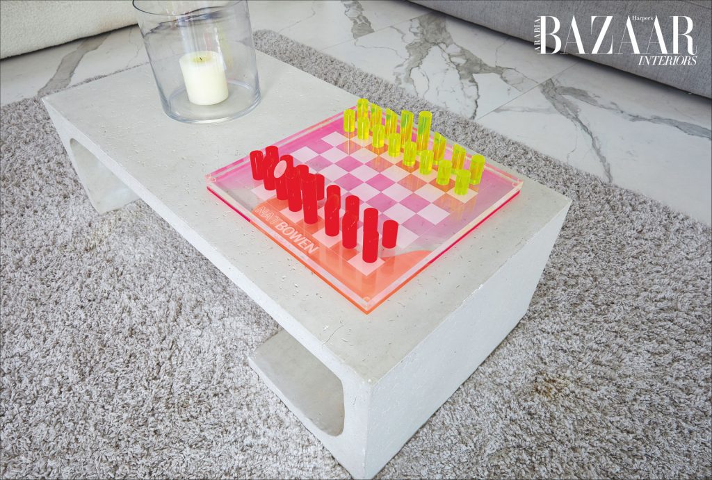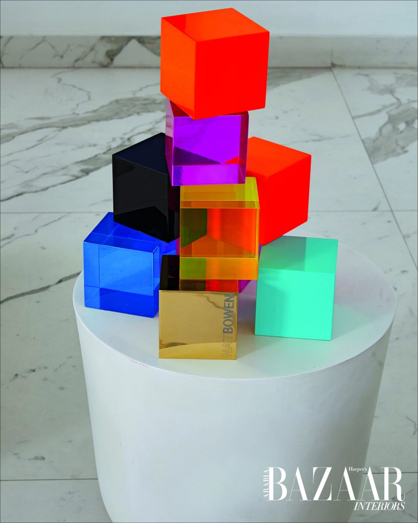 Currently on display at the third edition of the DIFC Sculpture Park, which will be on view until May 2025, is CHROMABLOX® #2.0, a five-metre sculpture by Nat which reflects her ongoing exploration of form, texture and colour, which have been an integral part of her process since the very beginning. In her villa, a smaller-scale version of the sculpture can be found, designed to bring the same sense of boldness and joy into the home to be enjoyed in a more intimate setting.