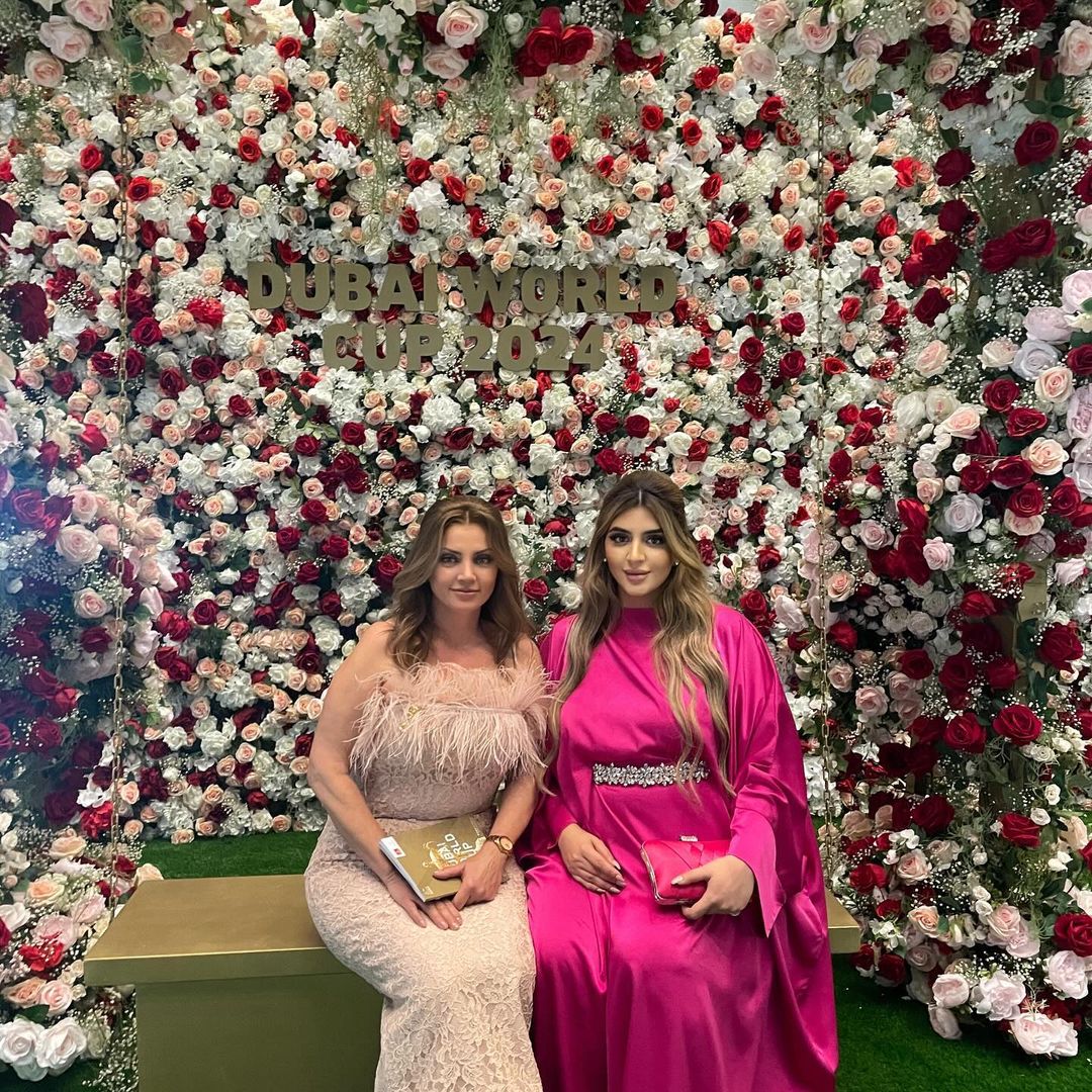 Set against an extravagant floral background, Her Highness Sheikha Mahra Al Maktoum was a picture-perfect example of elegance as she posed alongside her mother at yesterday’s Dubai World Cup.