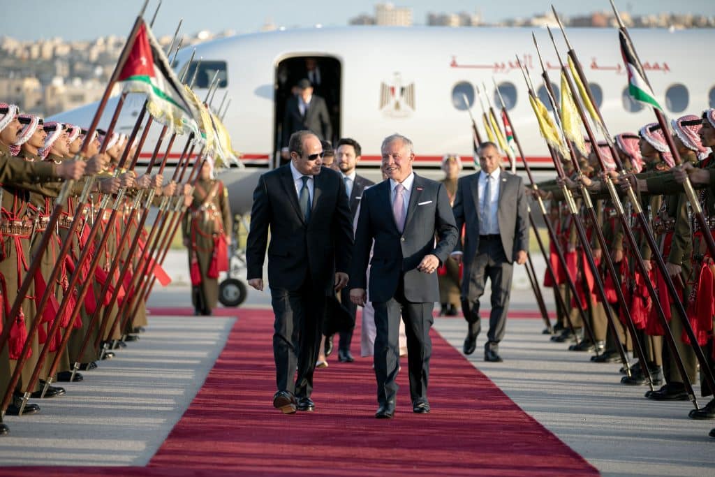 An official ceremony with a guard of honour parade as well as a red-carpet reception was held to welcome the Egyptian president and the First Lady to Jordan on Monday.
