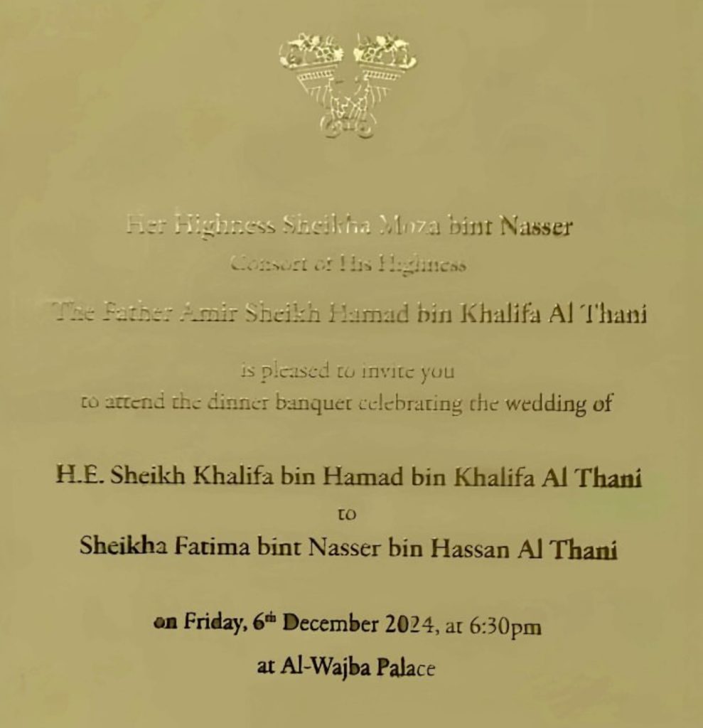 The Wedding Invitation of HE Sheikh Khalifa Bin Hamad Al Thani. Photo: Instagram @sheikhamozafashion