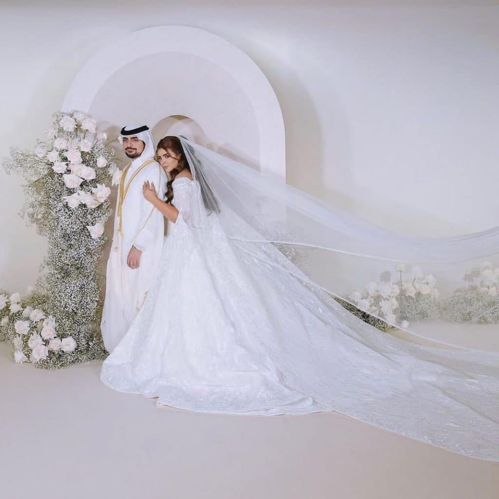 Pictures and video clips of the ceremony were widely shared on social media platforms by one of Sheikha Mahra’s friends, showcasing the luxurious decorations that adorned the Saeed Hall. On her special day, the beautiful bride wore an embroidered dress crafted by Dubai-based designer Ezra Couture, paired with exquisite diamond jewellery and a diamond watch by Chopard.