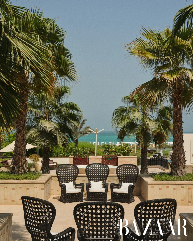 From the moment you enter the grand lobby and are greeted by the endless expanse of crystal-clear floor-to-ceiling windows, the Arabian Gulf sparkling in the distance, a sense of inner peace washes over you. There are no man-made beaches or towering skyscrapers in sight; every detail, inside and out, has been designed to complement the island’s diverse ecosystem. Although the architecture boasts a distinctive Mediterranean feel, it seamlessly fits in with Mother Nature’s own aesthetic.