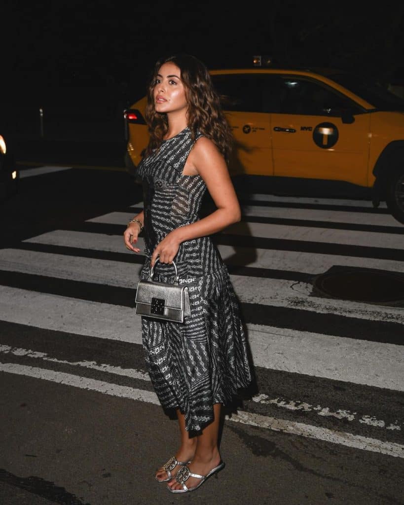 We also got a glimpse of an all-grey sequined number she wore to the Michael Kors showcase while mingling with Aalaa and fellow Arab creators.