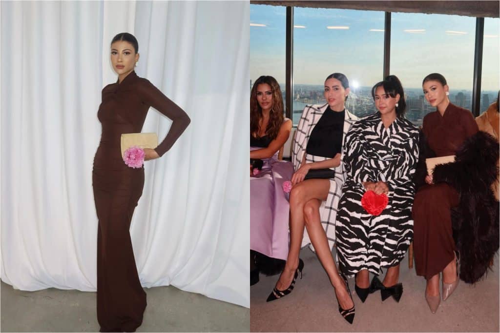 Saudi model and actress Jood Aziz was also in attendance at Tory Burch. She stunned in a printed, sheer, black and white gown, while opting for a belted black number at Carolina Herrera.