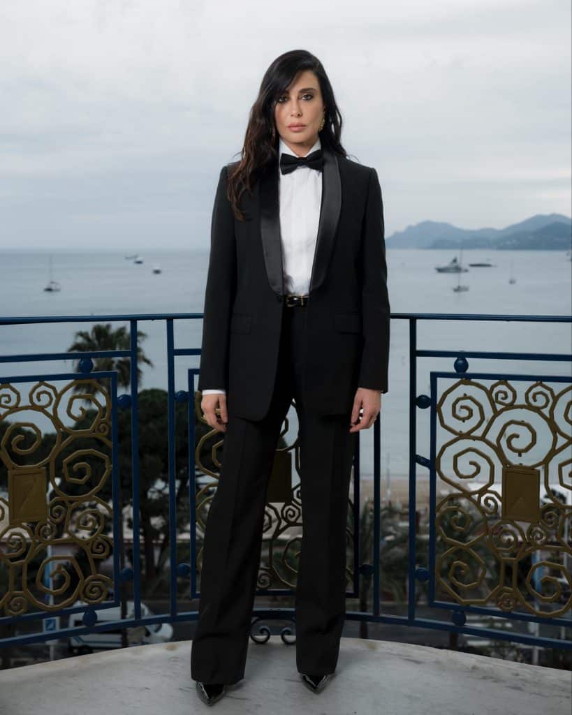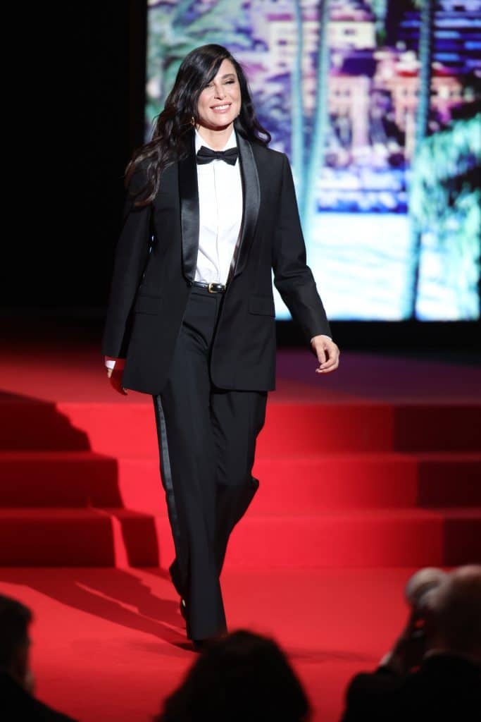 For the Le Deuxième Acte screening and opening ceremony red carpet, Nadine looked truly stunning in a classic black tuxedo from Celine, paired with a loose-collared shirt. Her look was cinched with a chic belt and complemented by a velvet bow tie, all styled meticulously by Sleiman Dayaa.