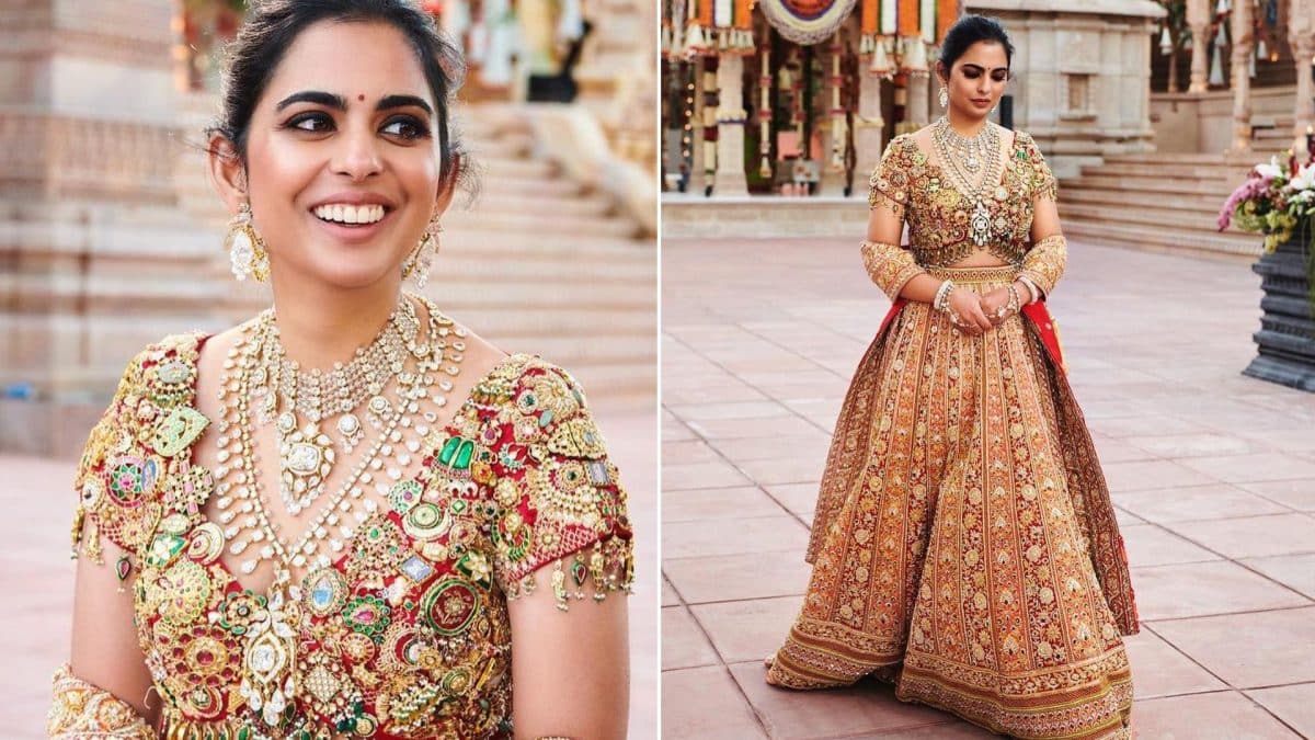 During one of the events, Isha adorned an extensively embellished red lehenga (skirt) and choli (blouse) and the fashion house detailed the intricate work that went behind crafting it.