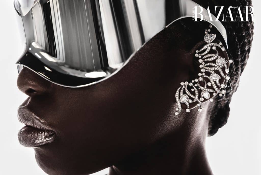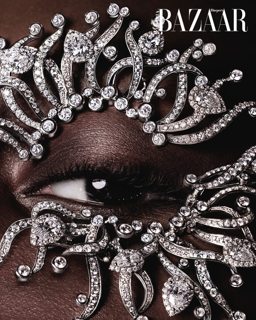 Top; Trousers, POA, both Rami Kadi Couture. Shoes, Dhs2,960, Malone SouliersTop; Headpiece, POA, both Rami KadiDress, POA, Kristina Fidelskaya. Necklace, Dhs43,000, Tiffany & Co. From top: Bracelet, Dhs26,800; Bracelet, Dhs26,800; Bracelet, Dhs26,800; Bracelet, Dhs58,760, all Tiffany & Co.Earrings, Dhs240,550, FabergéJacket, Dhs1,640; Trousers, Dhs1,400, both Rotate Birger Christensen at Ounass. Shoes, Dhs13,940, Giuseppe Zanotti. Earrings, Dhs52,200, BoucheronDress, POA, Erdem. From top: Necklace worn as headpiece, Dhs75,000; Necklace worn as headpiece, 96,000; Bracelet worn as earring, Dhs25,000, all Amwaj Jewellery