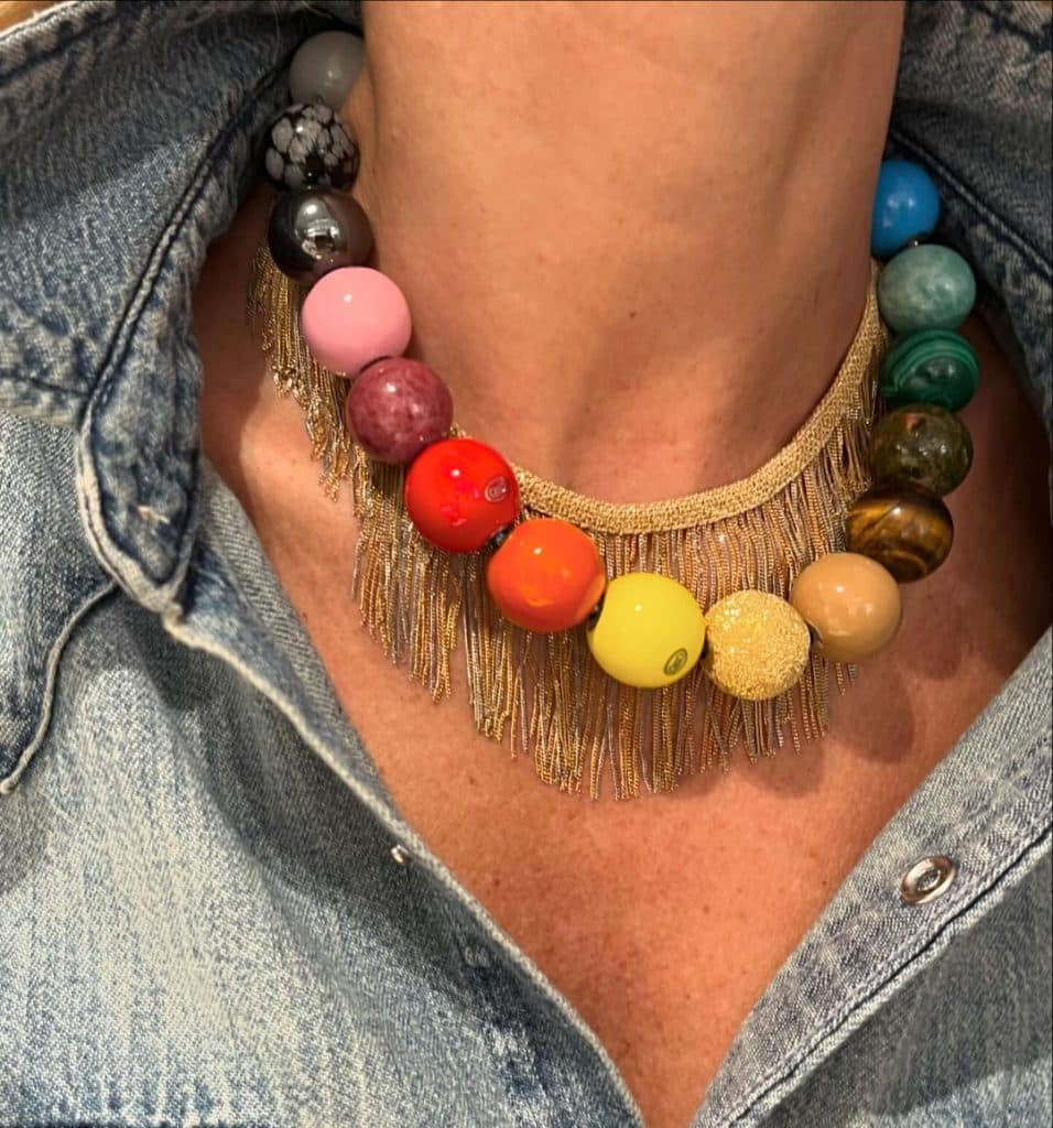 Minimalists beware, this one isn’t for you. Geraldine Hu is the styling pro behind @girl.with.a.diamond.earring and each of her posts features a riotous #neckmess unlike any other, bursting with kaleidoscopic charms, beads, pendants, cords and chains. Maximalist to the core, Geraldine gives each look a kooky theme – expect wild compositions of charms dedicated to Barbie, fast food, fishing, fruit and vegetables… you name it, she’s got it.