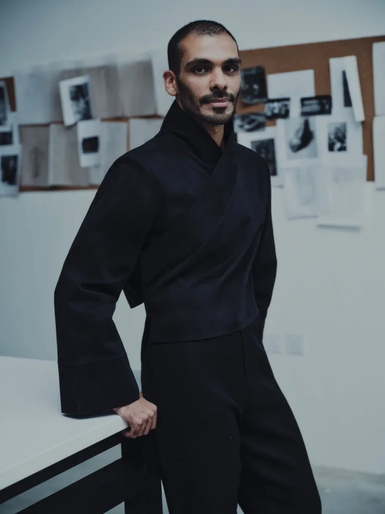 Ahmed Hassan is the creative director and co-founder of KML, a Riyadh-based menswear label launched in 2022 alongside his sister, Razan Hassan. Blending cultural heritage with a modern, spiritual edge, he has crafted a brand that redefines Saudi menswear by merging traditional silhouettes with minimalist tailoring and fluid, sculptural forms. KML has quickly emerged as a rising force in the Gulf’s fashion scene, earning international recognition and retail placement abroad.