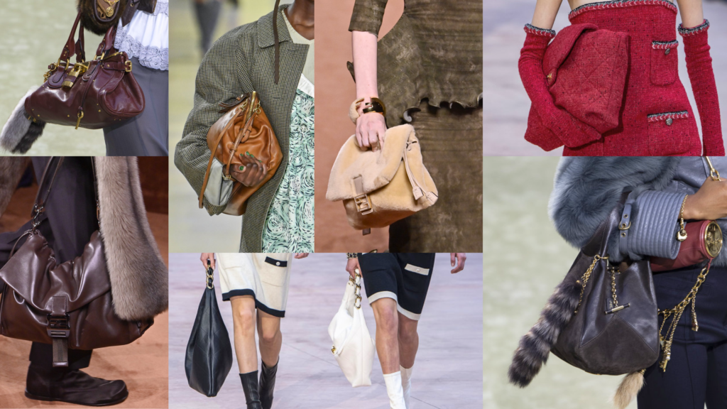 In the world of accessories, slouchy bags offered an effortless update — soft shapes carried under the arm or loosely over the shoulder brought a sense of ease to AW25 styling.