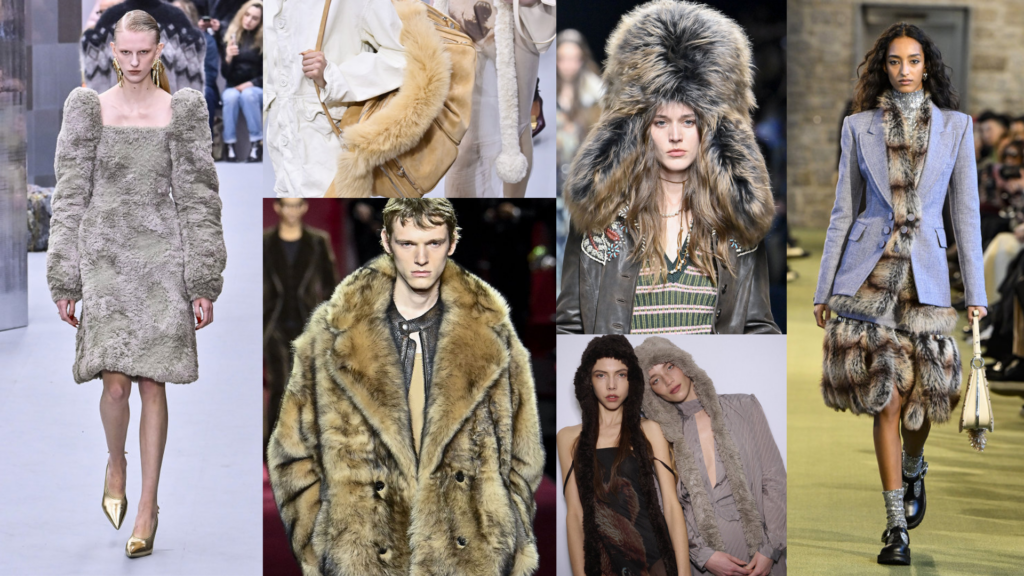 The A/W25 collections leaned into glamour without hesitation. Faux fur ruled the runways — Acne Studios, Etro, and Dolce & Gabbana proved that “mob-wife” energy is far from over. Oversized coats, cropped jackets, and reinvented faux fur pieces reminded us that fashion is at its most thrilling when it flaunts a little excess.