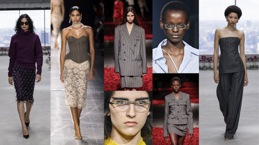 If the last few seasons flirted with “office siren,” AW25 committed to the theme. Pencil skirts, suiting, and pin stripes returned in sharp cuts at Carolina Herrera, Calvin Klein, and Ermanno Scervino, showcasing precise tailoring paired with sheer blouses. The effect was sleek, subtly sensual, and sharp.