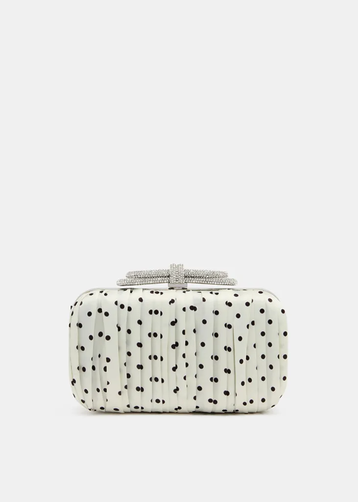Spotted on the catwalks, dots are back and making their way onto accessories this season. With its crystal encrusted bow-shaped clasp, this compact clutch is big enough for your big-day essentials and can be dressed up or down depending on your look.