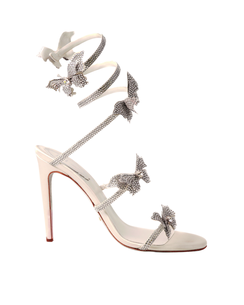 Adorned in crystals, satin and rhinestones, the Bridal collection of flats, sandals and stilettos from Rene Caovilla are your go-to shoe this summer. Peeping out from a floor-length gown or strutting their stuff matched with a mini, these shoes arrive in all the right ways