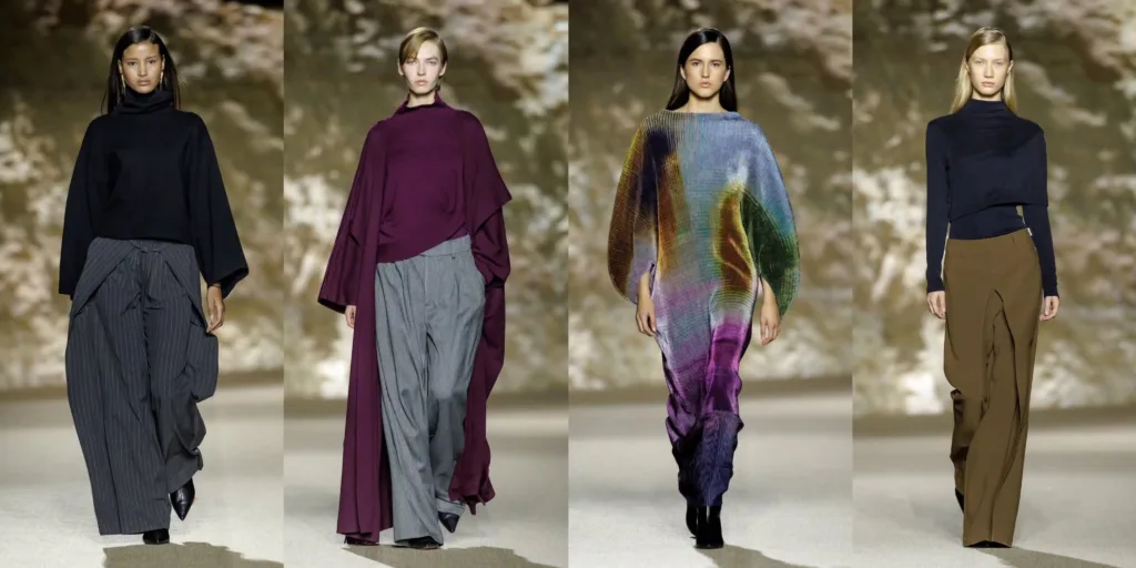 Abadia showcased a collection defined by soft volume and sophisticated layering. Wide-leg trousers paired effortlessly with long coats, tunics, and draped blouses in a warm palette of browns, creams, and golds, accented by muted pastels and rich burgundy hues. Luxurious fabrics like silk, velvet, and wool were crafted into relaxed silhouettes that seamlessly blended traditional inspirations with contemporary tailoring.