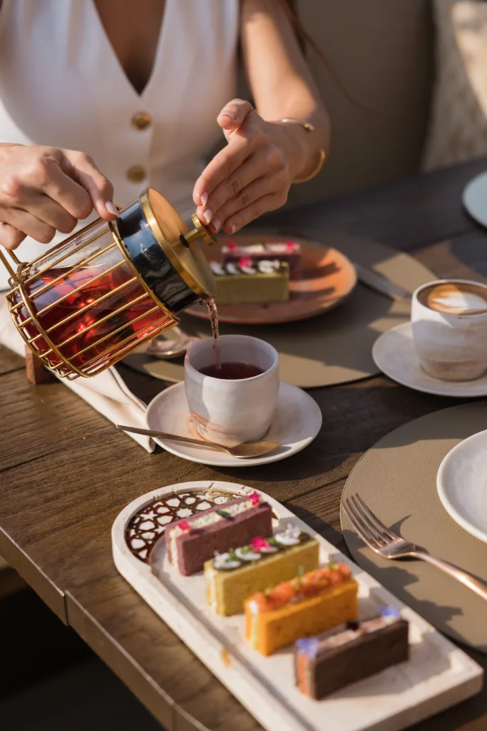 While watching the sun set from this vantage point is a heavenly and humbling moment, this season Balloons at the Palace welcomes guests to attend Breakfast in the Clouds, hosted from 09:00 to 11:00, every Friday and Saturday, while Afternoon Tea in the Sky is served daily from 13:00 to 15:00 and 15:30 to 17:30. Themed to “A Tale of Two Traditions,” this afternoon tea will be a firm favourite of the British expat community – expect delicate smoked salmon sandwiches and scones with regional twists à la vanilla mousse, pistachio and Kunafa. Guests can also attend The Spice Route Journey dinner seatings, from 18:30 to 20:30 and 21:00 to 23:00, offering six flavourful and fragrant courses including yellow fin tuna with harissa emulsion, succulent roasted prawns, and a choice of main course including beef tenderloin with date molasses jus or Mediterranean sea bass with saffron emulsion. Each course harks back to the lapping ocean and fragrant air that accompany the dining experience, seamlessly blending each balloon’s miniature universe into the vista that lies beyond the terrace’s grand balustrade.