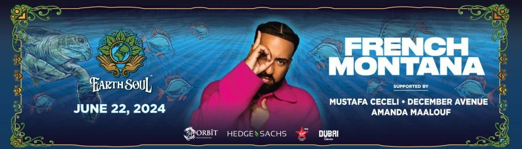 Also gracing the stage at EarthSoul is Unforgettable singer, French Montana. On June 22, alongside international sensations Mustafa Ceceli, December Avenue, and Amanda Maalouf, French Montana will promote environmental awareness through his music.