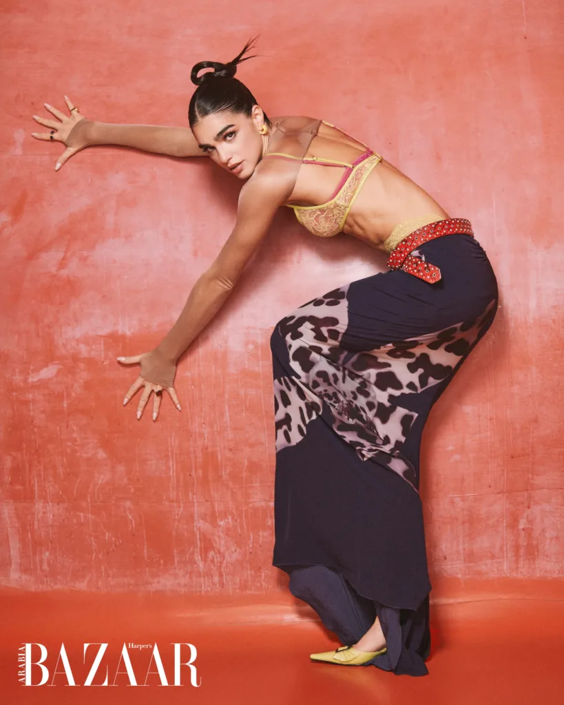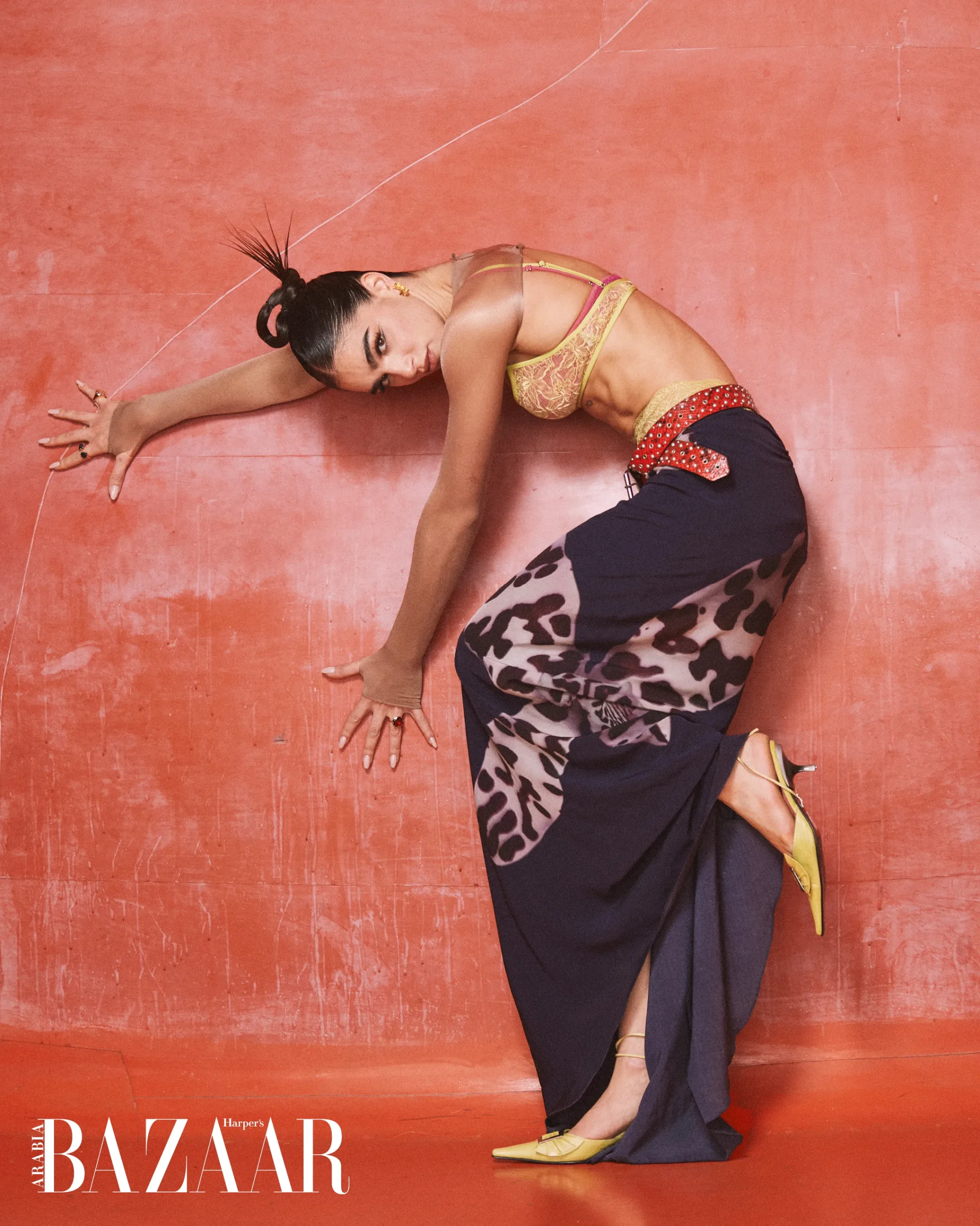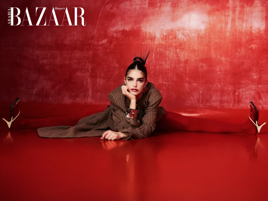It is no wonder she looks up to and waxes lyrical about fellow feminists like Nawal El Saadawi – “who fearlessly spoke about the freedom of women’s bodies and minds in the Arab world” – and Maya Angelou. Others she admires include Pina Bausch “she transformed dance into raw human truth,” and Maya Plisetskaya “for her integrity, strength and refusal to conform.” She also cites regional stalwarts like “cultural powerhouse” Fairuz, Um Kulthoum “an unmatched presence”, Hiam Abbas and former Bazaar Arabia cover star Elyanna for “representing a new generation of Arab women who are bold global and unapologetically themselves.”